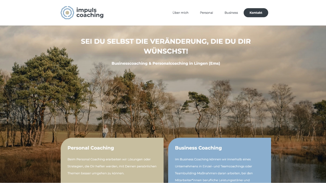 Im engen Austausch entstand ein klar strukturiertes Corporate Design, das Vertrauen schafft und die Haltung von Impuls Coaching sichtbar macht. Ergänzt wurde die Gestaltung durch einen stimmigen Webauftritt sowie eine umfassende Beratung und Begleitung über alle Projektphasen hinweg.